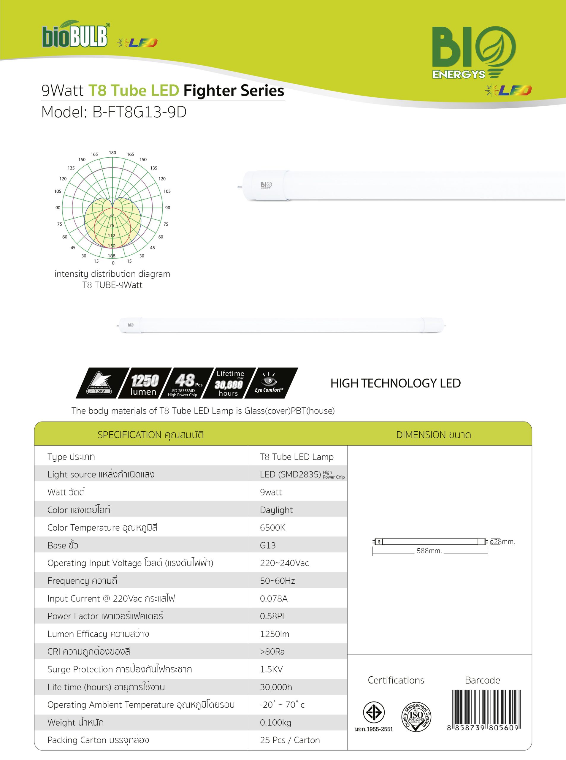 หลอดLED T8 B-FT8G139D-BIO