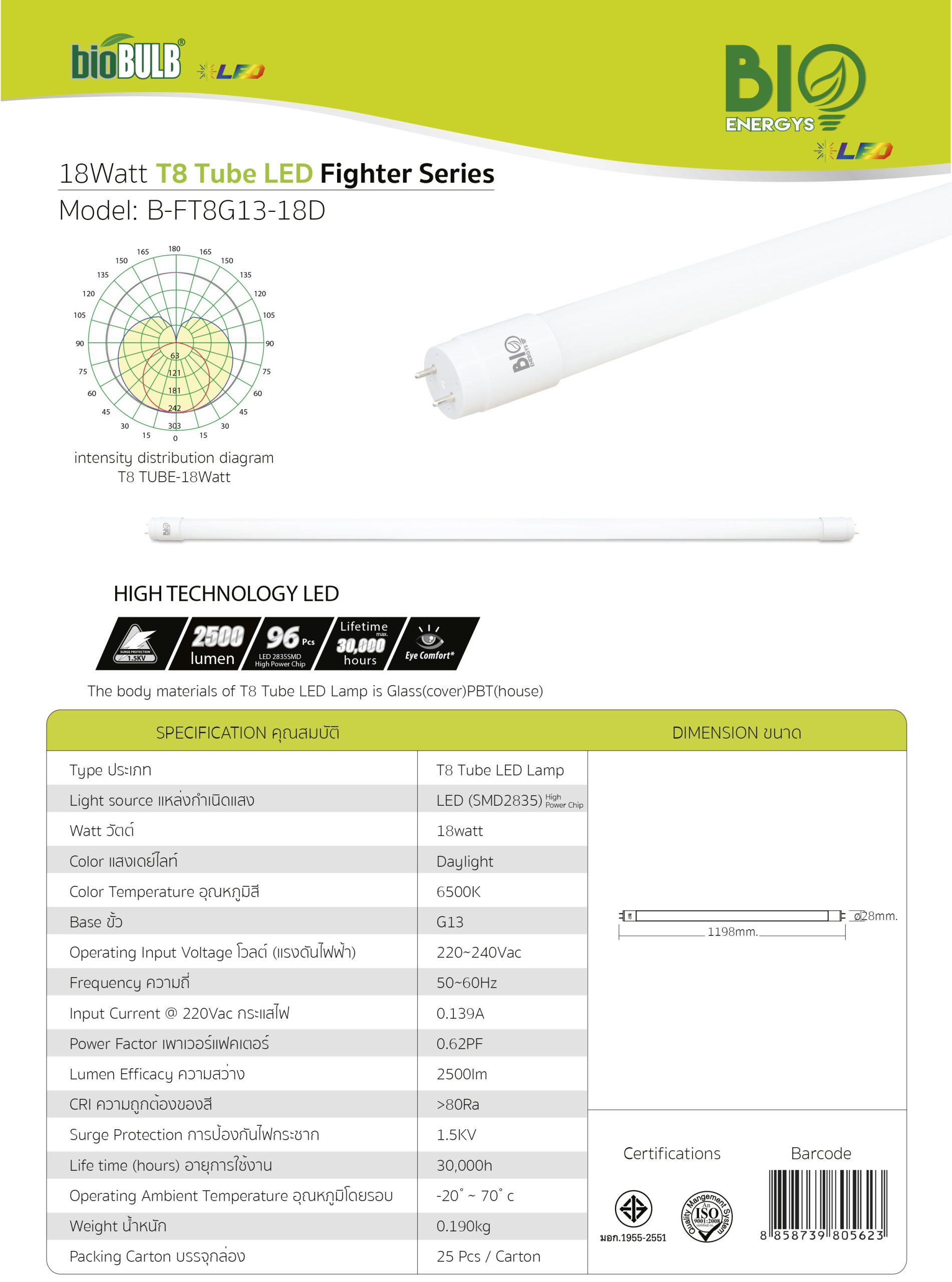 หลอดLED T8 B-FT8G1318D-BIO