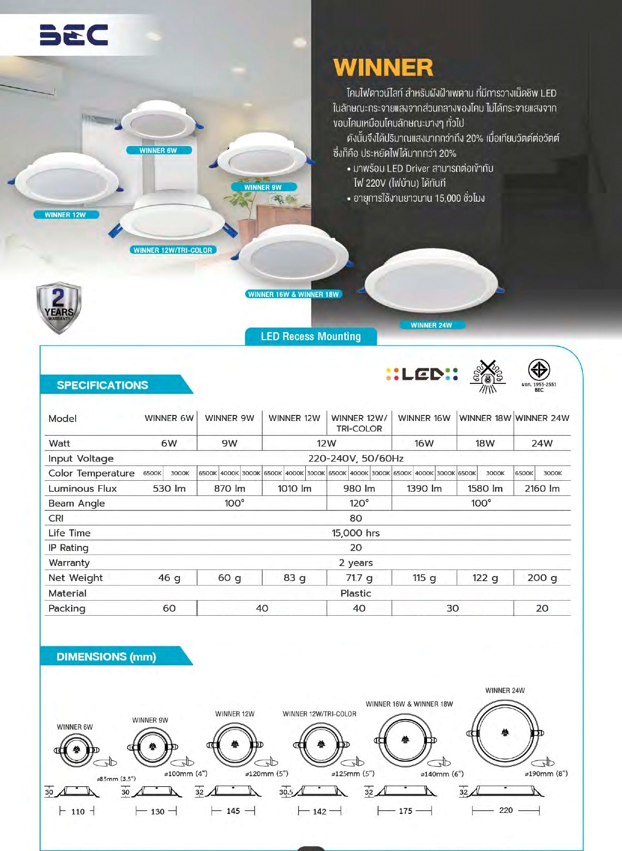 โคมไฟดาวน์ไลท์ WINNER-BEC