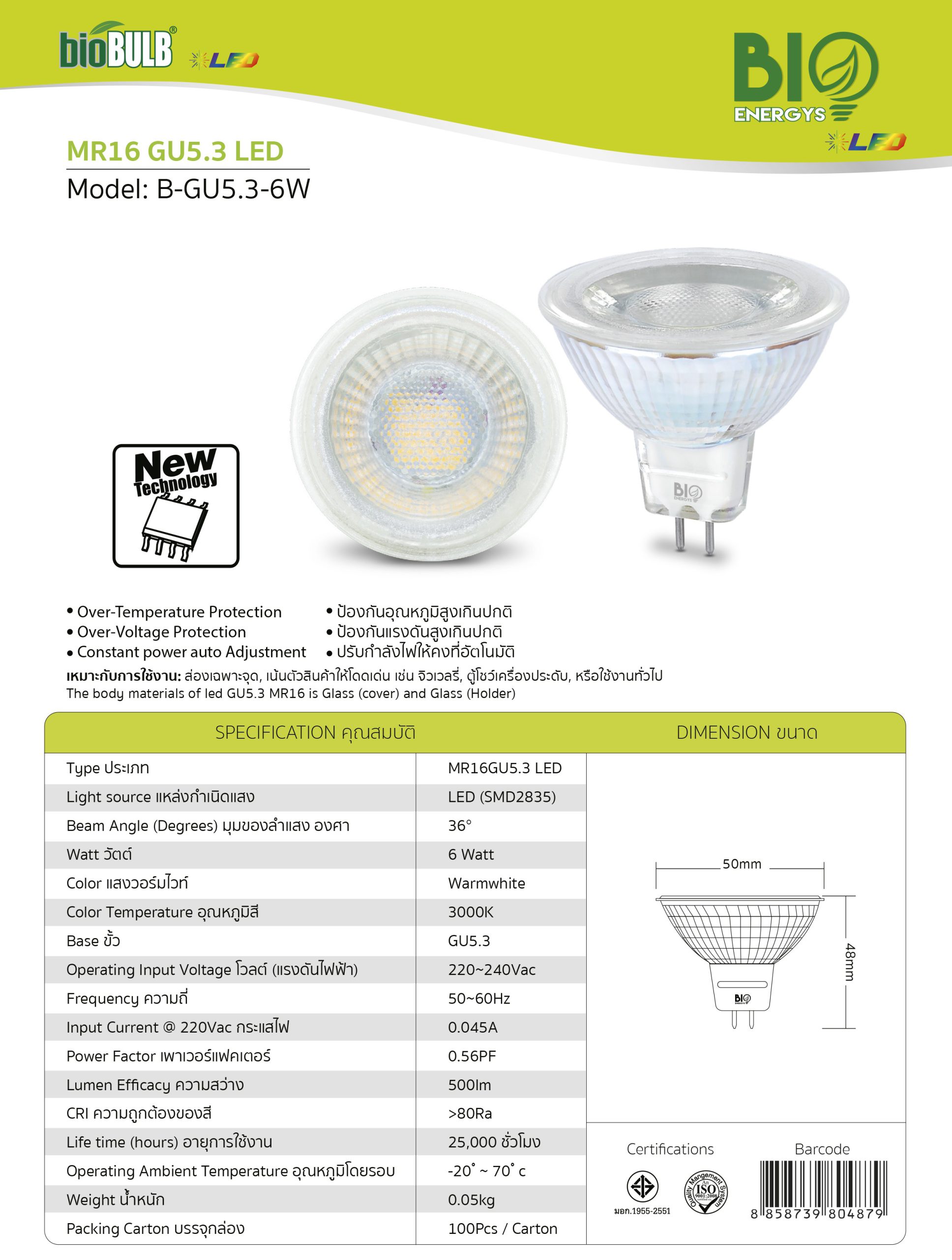 หลอดLED MR16 BIO-LEDGU5.3/DM-BIO
