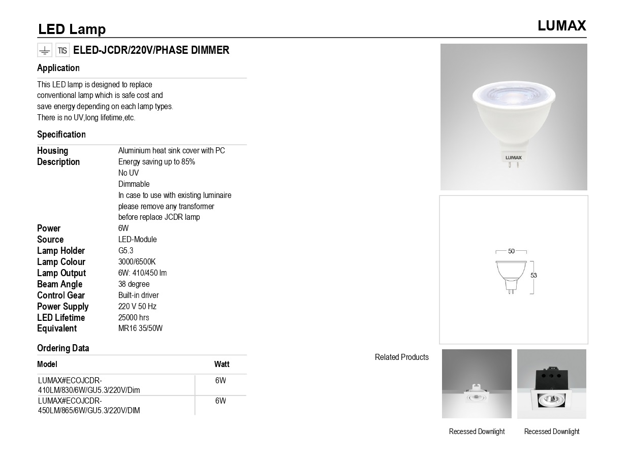 หลอดLED MR16 JCDR220V Dimmer-Lumax